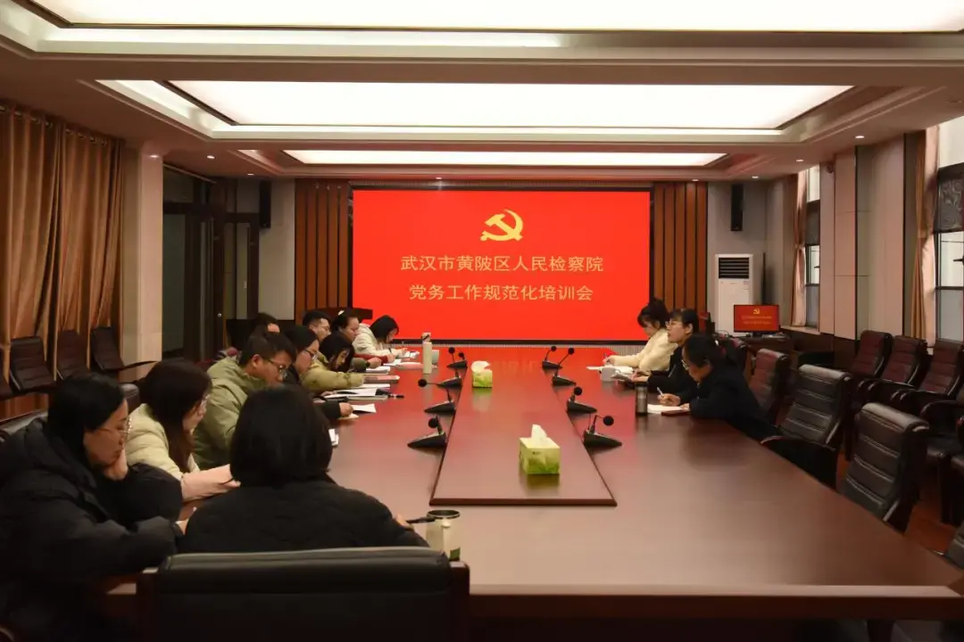 为深入学习贯彻新时代党的建设总要求和新时代党的组织路线,全面提升基层党务工作者履职能力,持续夯实检察机关党建工作根基,12月29日,黄陂区检察院组织开展党务工作专题培训会。各支部党务工作者全员参训,通过观看规范化视频、专题教学、互动研讨相结合的方式,形成“培训—研讨—提升”的闭环机制,推动党务工作标准化规范化建设走深走实。