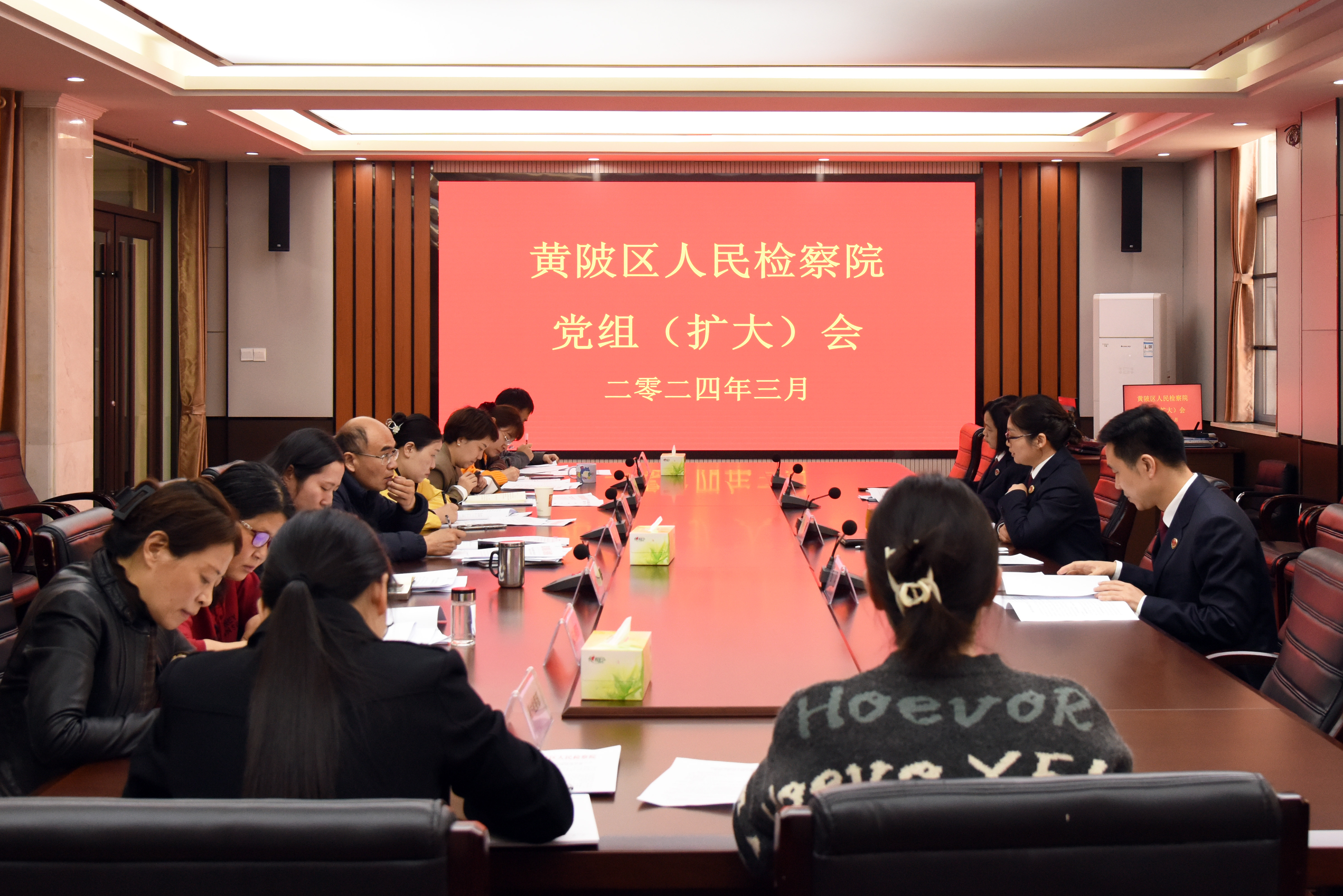 3月29日,黄陂区检察院召开党组(扩大)会,传达学习全省、全市检察机关党风廉政建设工作会精神,全市检察机关践行中国特色社会主义检察理念大学习大讨论动员部署会精神与全省、全市检察机关入驻基层综治中心工作推进会精神,并就党风廉政建设工作、践行中国特色社会主义检察理念大学习大讨论活动、“抓落实、求极致、强作风”专项整治活动展开动员部署。会议由院党组书记、检察长刘国媛主持,院党组成员、副检察长桂丹,检察委员会专职委员朱煊,各部门负责人参加会议。